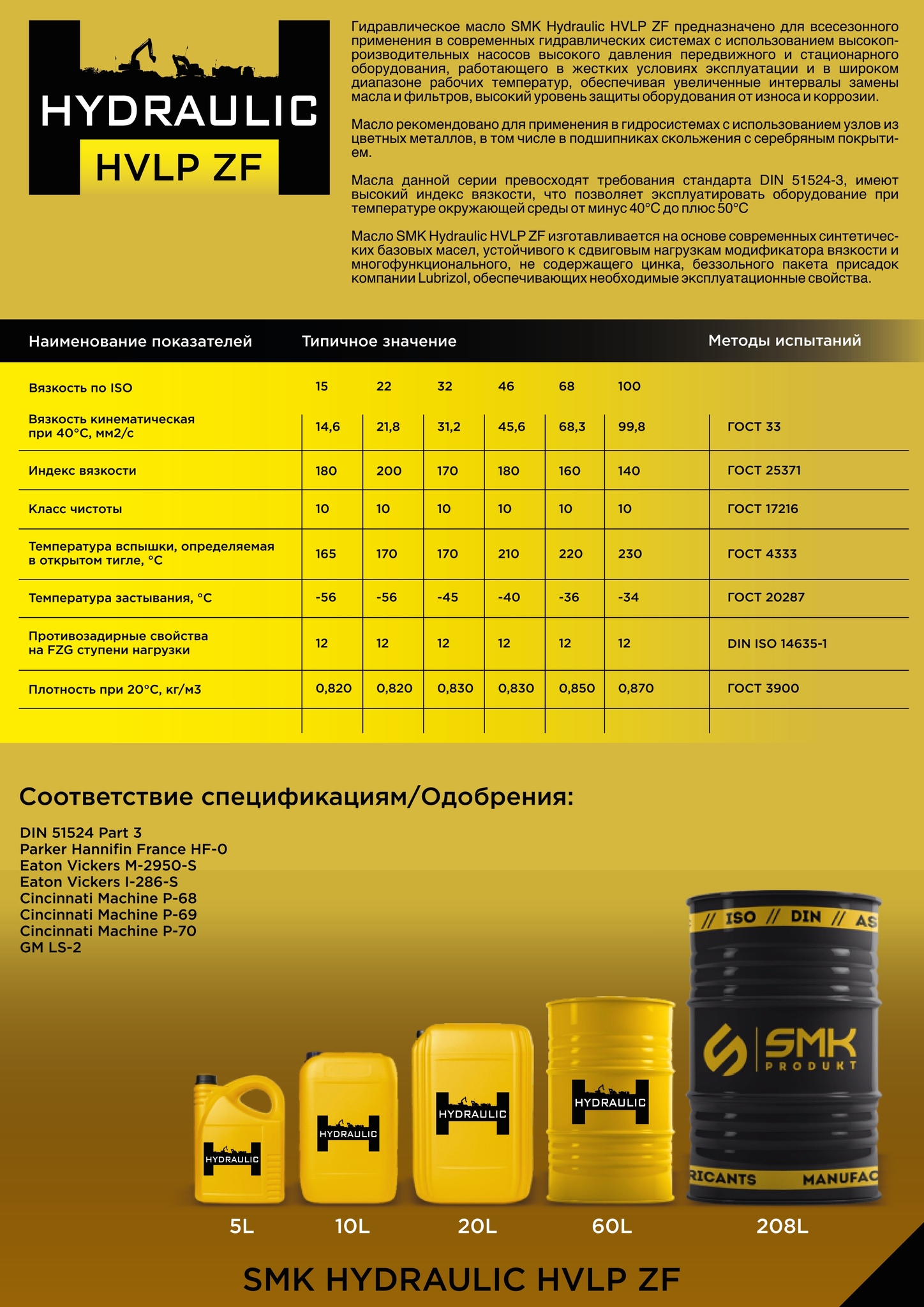 Всесезонное гидравлическое масло SMK HYDRAULIC HVLP ZF применяется в